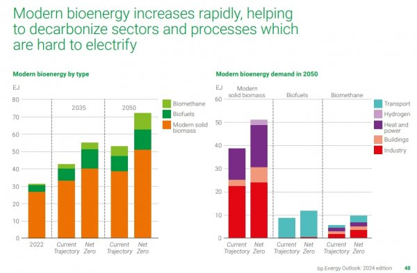 按照目前的軌跡,到2050年,現(xiàn)代生物能源的使用將增加約三分之二,到2050年,凈零使用將增加一倍以上,達到略高于70EJ。
