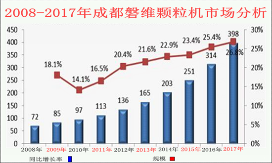 由圖可見,顆粒機發(fā)展市場不斷漲幅。國家對大氣層污染防治行動,推進電力工業(yè)節(jié)能降耗,加快煤電機組更替換代,降低火電發(fā)電煤耗、供電煤耗、使整治環(huán)境成為現(xiàn)實。2018非常有希望發(fā)展為煤礦等熱能更新?lián)Q代成為生物質(zhì)顆粒的時代,最終形成完整的產(chǎn)業(yè)鏈。